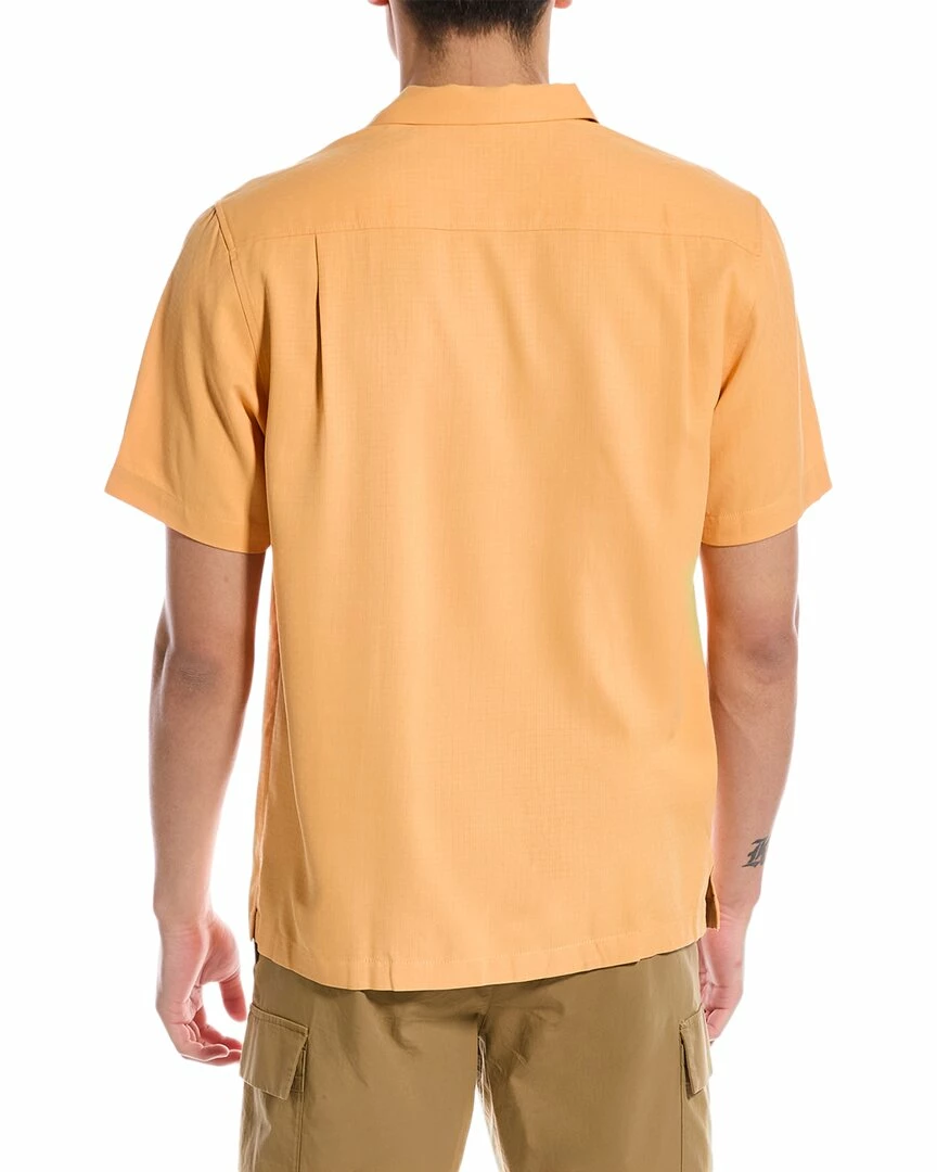 - Coastal Breeze Check Silk-Blend Shirt in lantern with camp collar and left chest pocket