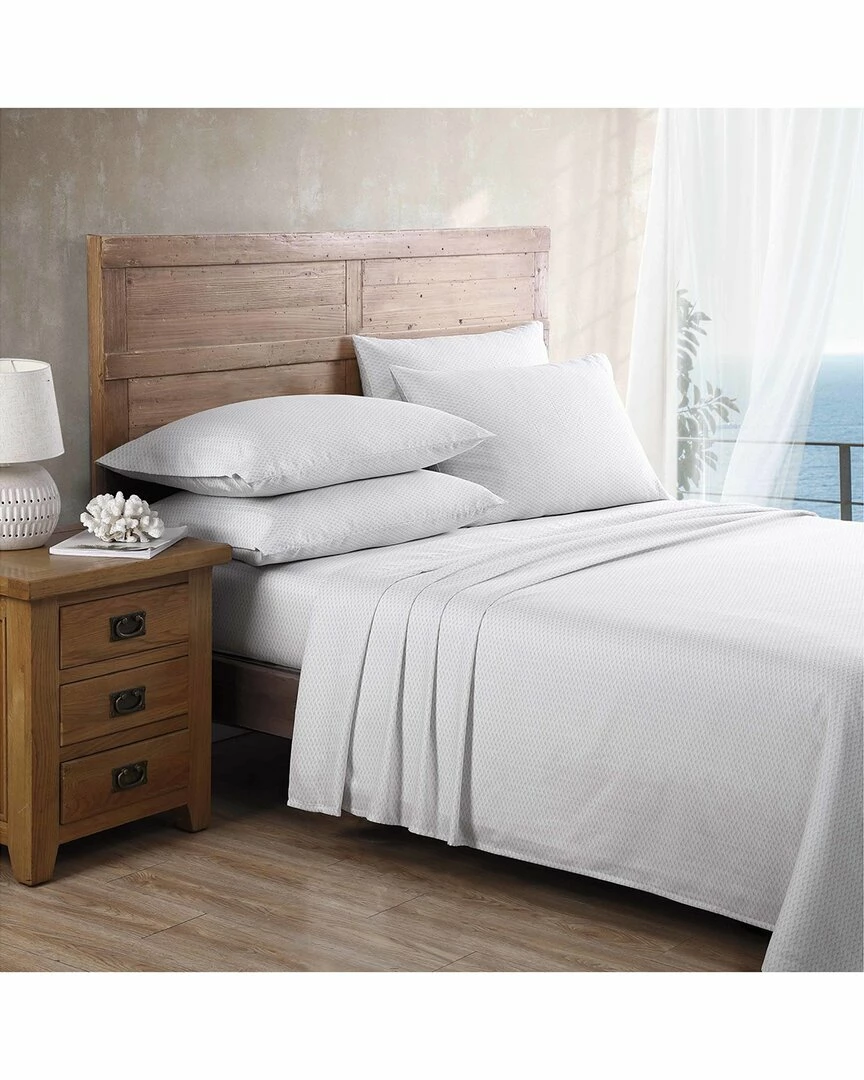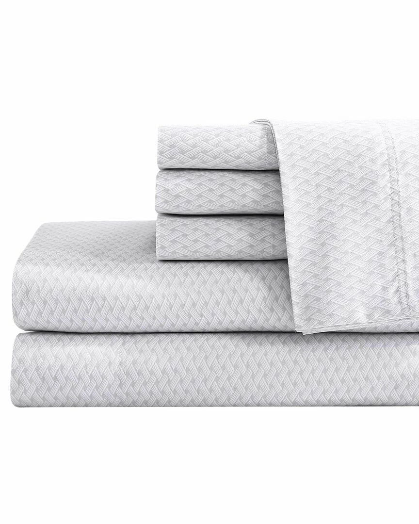 - Design details: sateen- single ply sheet- woven with a tighter weave, made to be extra soft with a smooth feel; the sheet set offers a sleek, smooth and comfortable feel, set includes a fully elastic fitted sheet- premium elastic installed all-around to keep the fitted sheet in place; deep pocket: 15″ fitted sheet pocket depth – fitted sheet fits mattress up to 18″,the coordinating pillowcases features a side closure, highlighting a more traditional style with a simple, draped look, made in oeko-tex standard 100 factory, an independent certification system that ensures textiles meet high safety and environmental standards, the tommy bahama 1000 thread count sateen sheet set features a wicker inspired print on a grey ground