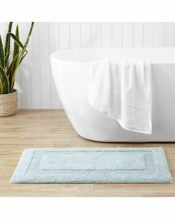 - Design details: this bath rug is durable and soft, 260gsm,highly absorbent and low linting,oeko-tex certified, the mark of excellence for products that are healthy for you and healthy for the environment., this bath rug is tufted and reversible, features a solid yarn dyed aqua ground and a framed border pattern