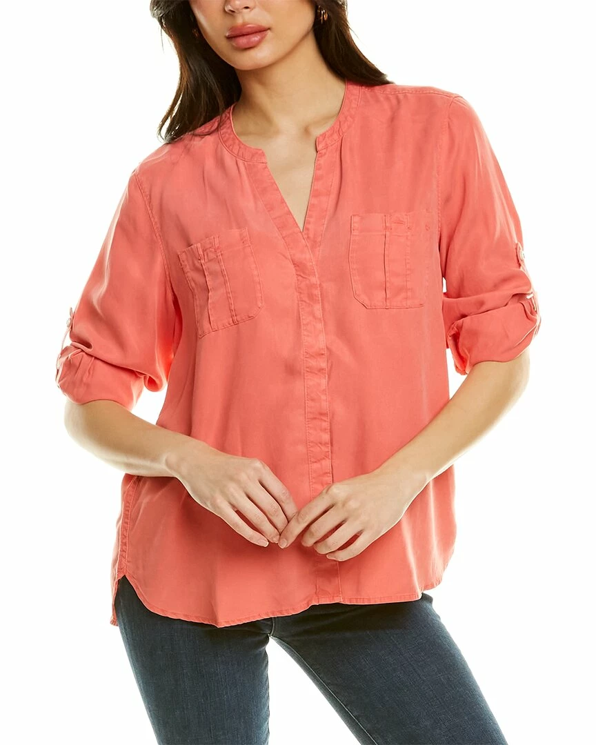 - Mission Beach Shirt in light pomodoro with dual chest pockets and roll-up tabs at sleeves