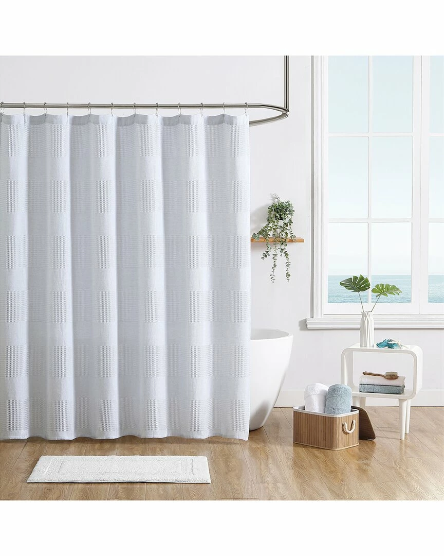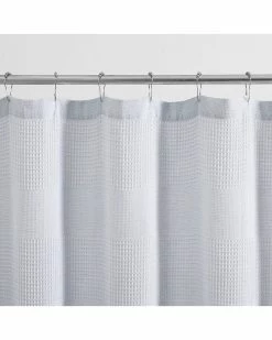 - Design details: this shower curtain has a lightweight yet durable feel, developed with 12 hook holes- hooks sold separately, made in oeko-tex standard 100 factory, an independent certification system that ensures textiles meet high safety and environmental standards, the moa shower curtain features a solid pastel blue waffle textured woven ground
