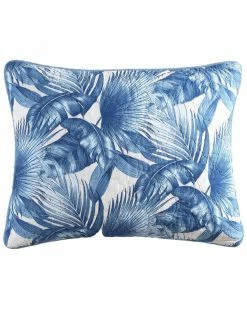 - Design details: our tommy bahama royal palm quilt features a blue palm leaf motif on a white ground. the reverse is blue. this quilt is 100% cotton, with a cotton (80%)/polyester (20%) filling, lightweight and easy to layer. the shams feature a two piece back closure. the shams and quilt feature rounded edges and are finished with a fabric binding. this quilt set is fully reversible. we have reduced our packaging, eliminating all plastic. your quilt set will arrive secured with a ribbon. the set includes 1 quilt and 2 shams (1 sham for the twin set). machine washable, for easy care.