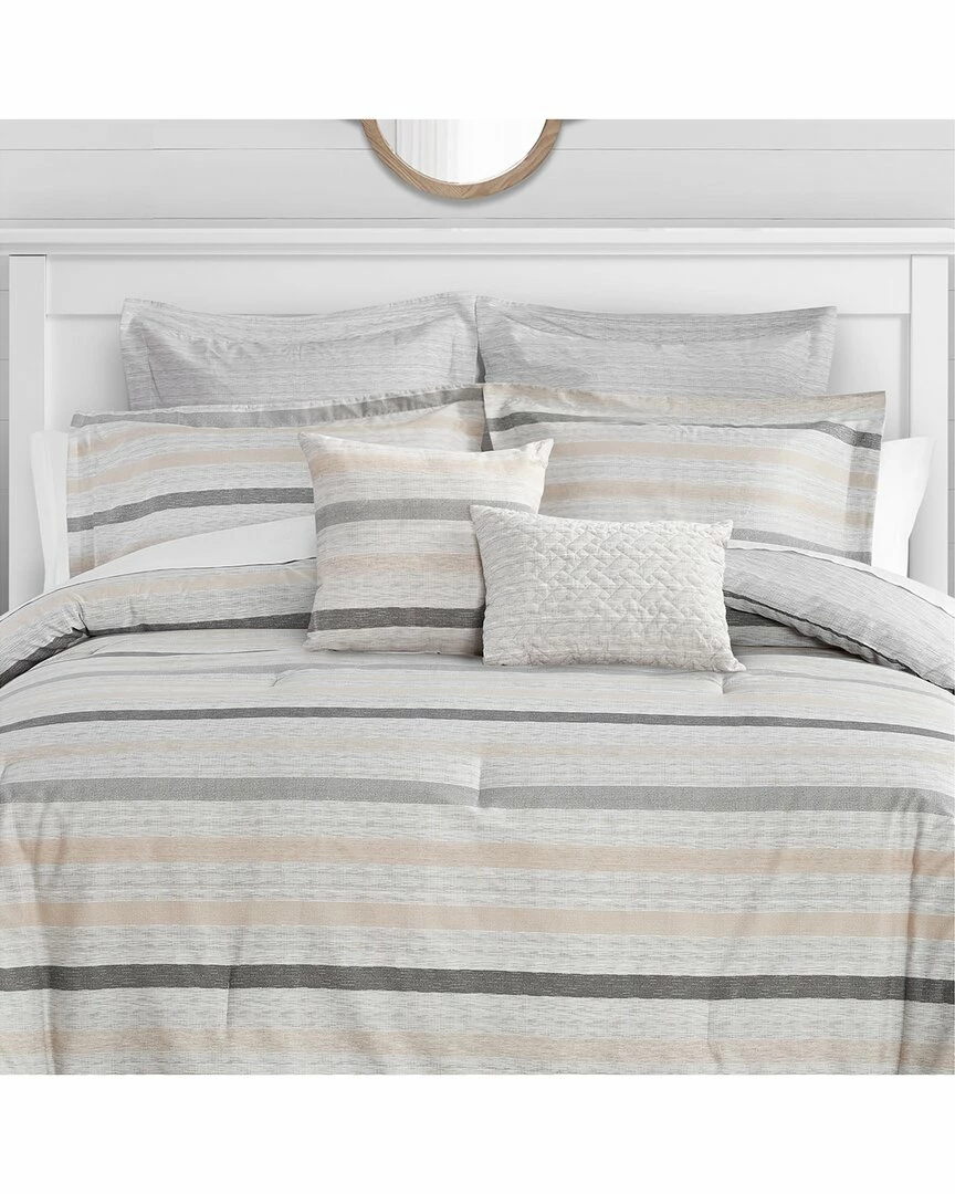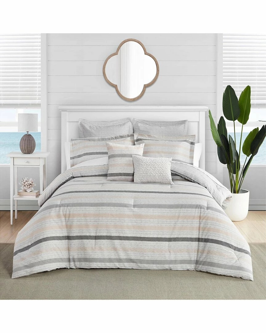 - Design details: this comforter has a lofty and soft feel, medium weight, comforter fill- 100% polyester; 8oz. fill weight per square inch, included shams features a two piece back closure for easy removal, made in oeko-tex standard 100 factory, an independent certification system that ensures textiles meet high safety and environmental standards, our tommy bahama textured sandy beach comforter bonus set features horizontal stripes in shades of grey and beige on a printed textured ground, the reverse features a grey printed textured ground