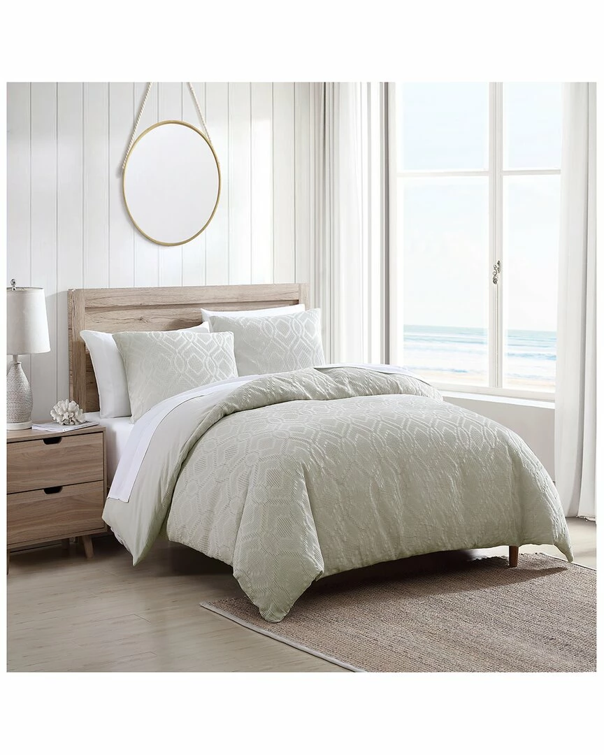 - Design details: this comforter has a cozy medium weight, slightly textured feel, comforter fill- 100% polyester; 8oz. fill weight per square inch, included shams features a two piece back closure for easy removal, made in oeko-tex standard 100 factory, an independent certification system that ensures textiles meet high safety and environmental standards, our tommy bahama textured waffle set features a sage geo embroidered design reversing to a solid sage ground